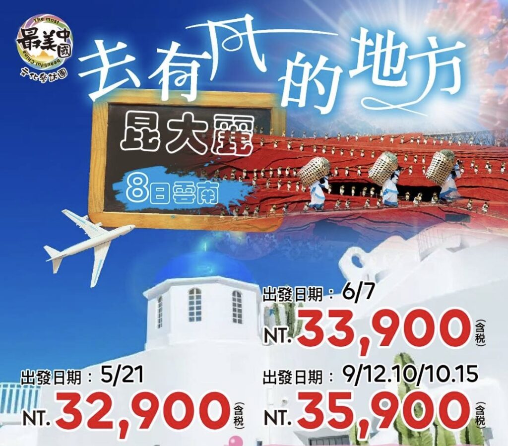 【10/22金色南疆13日】喀什老城旅拍、金色胡楊島、天山大峽谷、羅布人村寨、古麗家訪、烏尉高速[早鳥69900含稅] 精彩行程查看 河南+山西。壺口瀑布.平遙古城.雙秀8日~王家大院、龍門石窟、司徒小鎮•打鐵花 精彩行程查看 9-10月【最美貴州8日】黃果樹大瀑布、西江千戶苗寨、織金洞、 無購物無自費 精彩行程查看 金秋南疆13天~有早鳥!喀什老城、金色胡楊島、天山大峽谷、羅布人村寨、古麗家訪、城際列車。 精彩行程查看 【去有風的地方遇見你~昆明大理麗江8日】小聖托里尼.鳳陽邑.沙溪古鎮.喜洲古鎮.洱海 精彩行程查看 仙境甘南~ 天空之城:紮尕那、郎木寺、蓮寶葉則、畢棚溝、九曲黃河第一彎八日(一段高鐵) 精彩行程查看 春遊黃山與江西十日~ 中國第一山黃山、臥虎藏龍宏村、仙境廬山、望仙谷、龍虎山、婺源曬秋、油菜花梯田、鳳凰溝百畝櫻花_加贈WIFI卡 精彩行程查看 來自大自然的呼喚~青海甘南10天 精彩行程查看 金秋楓紅~絕美秘境:二進稻城亞丁、四姑娘山、康定木格措、瀘定橋10天 精彩行程查看 擁抱黃山~北海、西海、夢幻、白雲、玉屏、黃山上住四晚尋仙~望仙谷、葛仙山、靈山慢活~婺源月亮灣、葟嶺曬秋十日遊~ 精彩行程查看 群賢全球旅遊行程 更多行程查看 更多精彩行程 群賢旅行社股份有限公司代表人:盧素珍 甲種旅行業交觀甲第8042號 品保北0065號群賢旅行社是由一群樂於旅遊之工作者,為了提供優質旅遊服務的理念所創立。經交通部觀光局登記立案,並為中華民國旅行業品質保障協會會員,具有良好口碑之甲種旅行社。